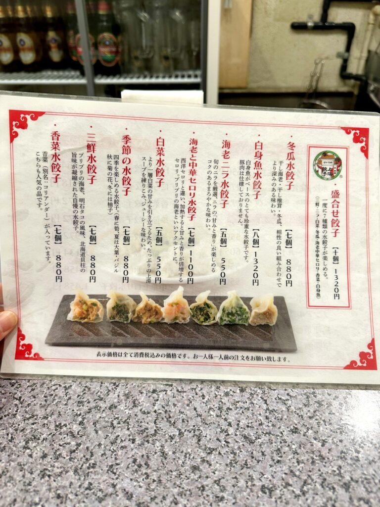メニューには、個性豊かな水餃子がなんと8種類も揃っています。