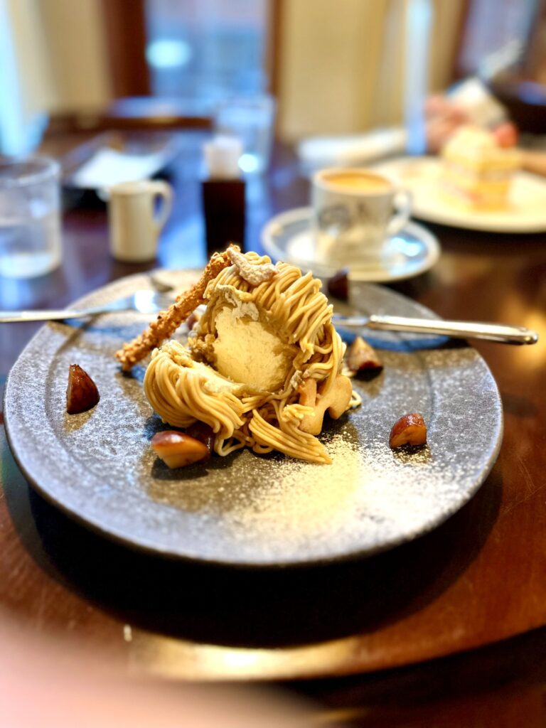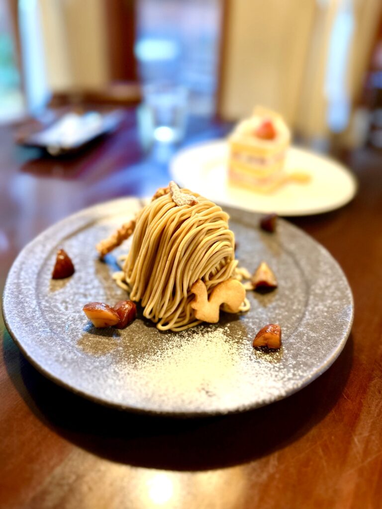 約20席ほどある喫茶スペースでは、ショーケースの生菓子はもちろん、イートイン限定の”しぼりたてモンブラン”などがいただけますよ。